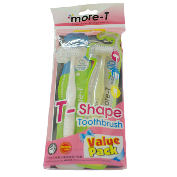 T-shaped toothbrush is invented with the concept of “caring for teeth”. It emphasizes the correct method of brushing, using up and down brushing movement, from gum to teeth to gum, effectively cleaning all surfaces of teeth and remove stains and plaques. This is so true because our teeth needed to be take care of in our daily life. Brushing teeth twice a day is important, proper brushing method is nonetheless crucial to maintain oral health and oral hygiene.